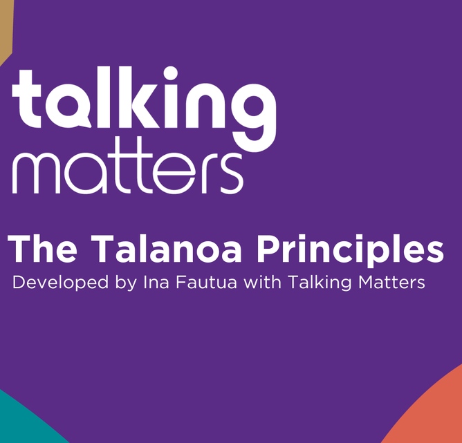 The Talanoa Principles, were developed by Ina Fautua and her mother, in partnership with Talking Matters. They are rooted in the Samoan understanding of the Vā, which shapes how Samoans relate to and connect with each other.